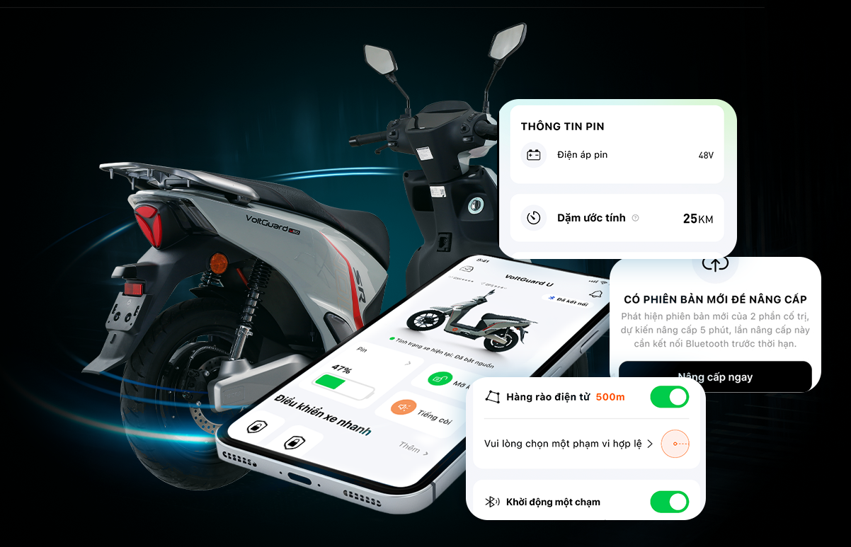 Chân chống ngắt điện là tính năng an toàn mới trên xe Voltguard U50, giúp tự động ngắt nguồn điện khi chân chống được hạ xuống, ngăn ngừa nguy cơ tai nạn và bảo vệ người lái khi dừng xe.